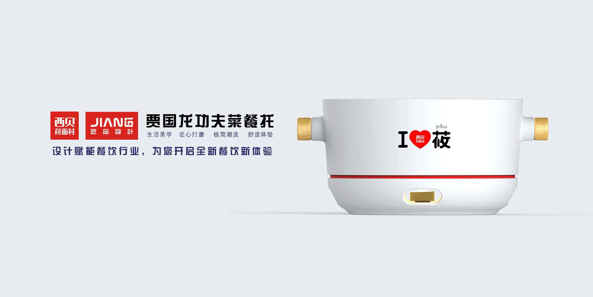 賈國(guó)龍功夫菜的誕生,在餐廳用餐時(shí)為了保證菜品的口感及用餐體驗(yàn),需要菜品保持適宜的溫度,這款餐托就是針對(duì)這種情況應(yīng)運(yùn)而生,提取功夫菜慢燉需要功夫和火候的理念,提取砂鍋造型進(jìn)行升級(jí)設(shè)計(jì)。